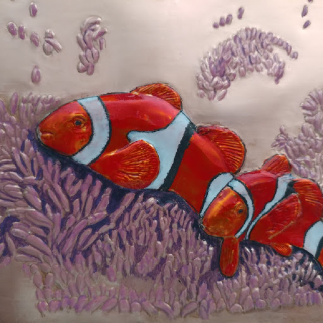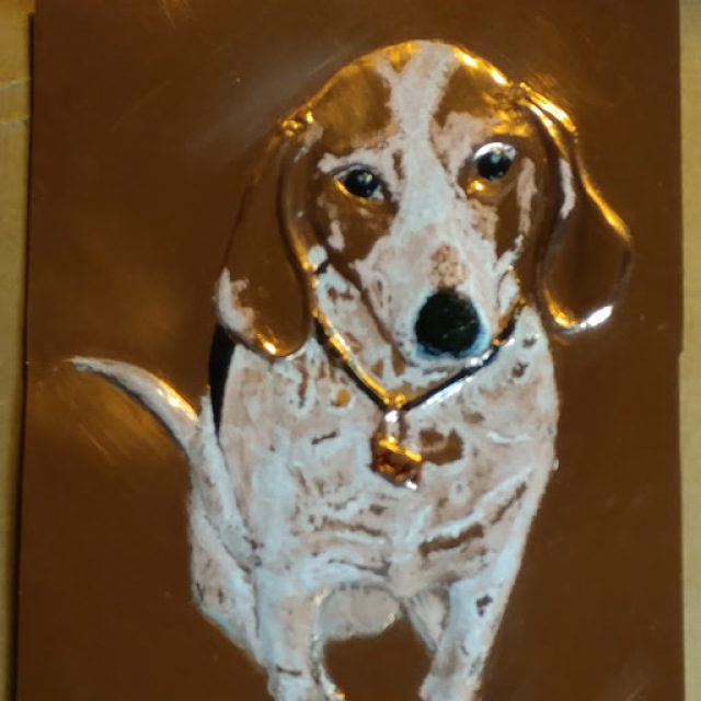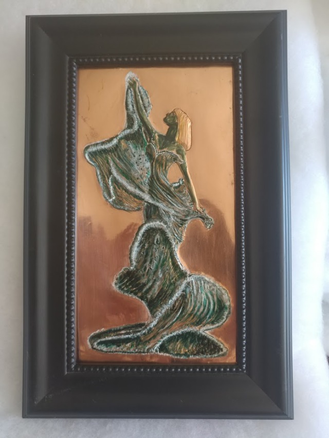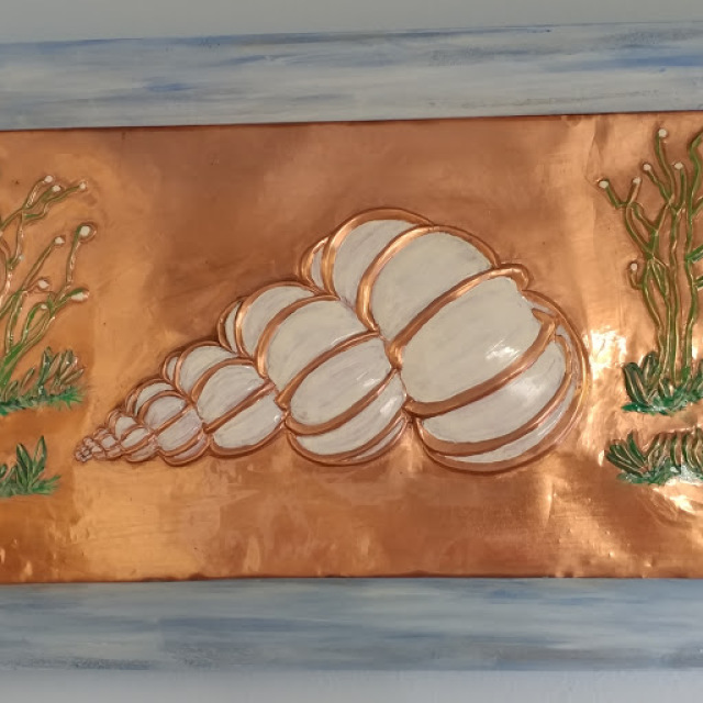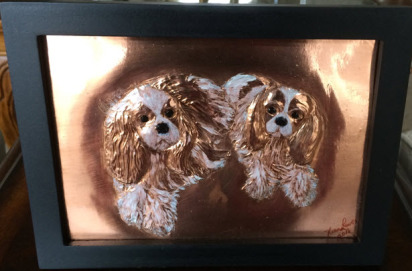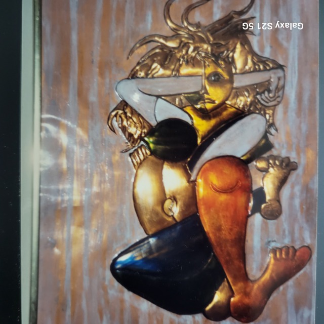 Abstract in Picaso style - On Cooper with Pebeo Glass and Porcelaine Paint