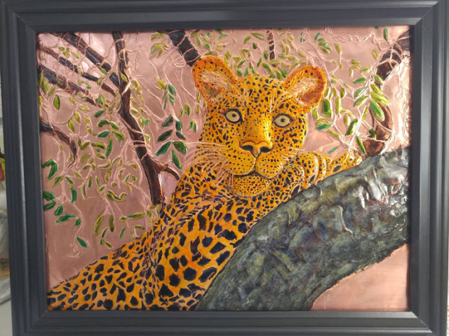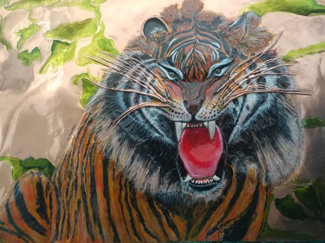 Angry Tiger Created using Copper Metal - Hand Painted w/ Vitrail