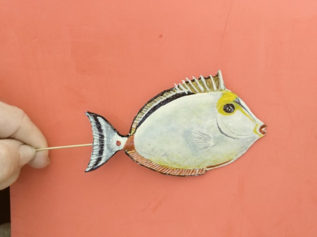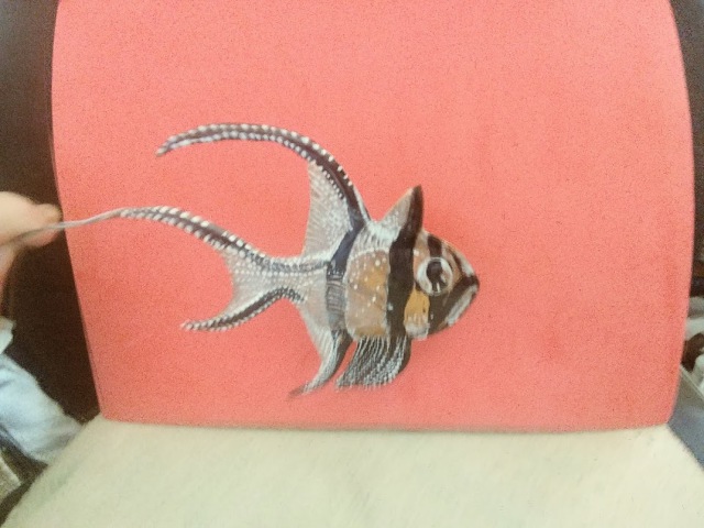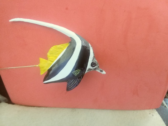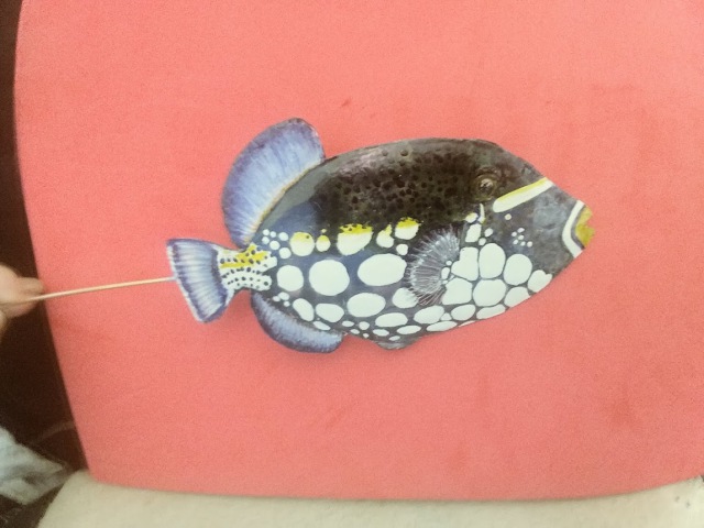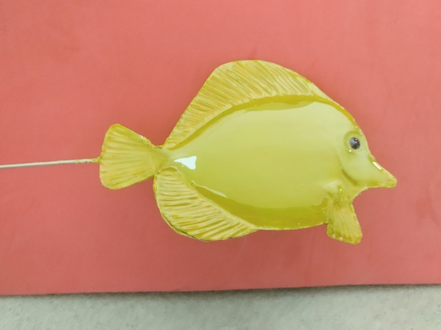 They are suspended using the wire to make it look like they are floating around. They are Match painted on two-sides and joined all around. They are 5 to 6 inches in size. Sea Horses are coming soon.