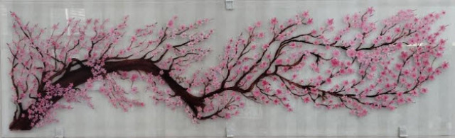 Cherry Blossoms about 80 + blossoms on 60 inch wide glass using Pebeo Glass and Acrylic Ink blends